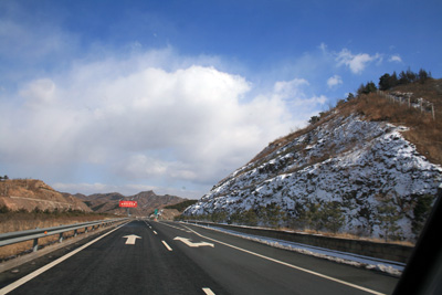 金杯车载着义工们的欢声笑语,开始了从北京到赤峰的路途。随着我们日渐北进,气候也越来越寒冷,河流也开始冰冻起来。山上路边都有积雪,清晨的凉风加强了势力,摇身一变成了凛冽的大风,将我们吹回了冬天。由空间的移动而倒流了时间的感觉很美妙。