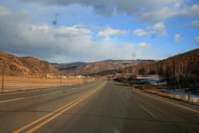 车窗外,仍旧满眼是枯草,但远近的山脉、树木和土地却依然展现着多姿多彩的颜色。有时山上一片暗红,有时远山是青色的,有时连绵的山脉被一大片云彩遮挡呈现暗色,周围的山脉则是明亮的土黄色。随着云彩的变动,山上的光影也在变动着。有时一片早绿的树林为大山铺上了一个绿色的披肩;有时一排树木长在山脊上,似乎是一把倒放的梳子,有时山上被开垦出梯田,就像是铺着白雪的楼梯!远山的颜色是柔和而舒缓的,近处的山则给人一种很强的压迫感,它们身上堆积着厚厚的残雪,却又不时显露出嶙峋的石块。