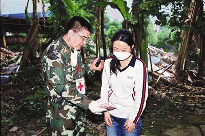 陈光标向四川地震灾民发放现金,帮助他们解决燃眉之急。