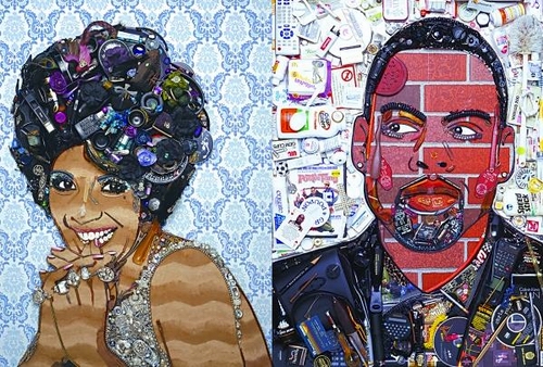 这些用废弃的电池、手表、胶卷等制成的明星肖像是美国艺术家詹森·迈尔西埃的杰作,这些原材料都是沃霍尔本人丢弃的垃圾。千万别小看这些罐头,它曾经让60年代的美国艺术界为之癫狂,直至现在。詹森来自美国旧金山,这位充满幽默细胞、极富想象力的前卫艺术家起先用豆子、面条制作镶嵌画,后来选用口香糖、巧克力豆之类的零食,现在,明星们大量产出的垃圾激发了詹森的创作灵感,想出这等“废物利用”的法子,谁能说40岁的詹森·迈尔西埃不是个天才?