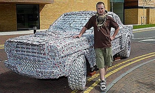 醉酒驾车是违法的,但是用啤酒罐做汽车并不违法。英国Hertfordshire大学艺术与设计专业的学生Jack Kirby就用了4000个百威啤酒罐造出了它的最爱-1965年福特野马。据说Jack Kirby每天喝四罐啤酒喝了三年才凑齐这些罐子,不容易啊!百威真的应该好好奖励这位忠实的顾客了。