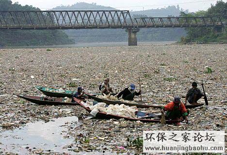 也曾经是一条缓缓流动的河流,渔夫在水面上撒网,水鸟在这里捕食,美丽的风光让造访者神往。附近的村民曾经到这里挑水回家,而这条河流也是灌溉他们田地的母亲。现在,这条叫做Citarum的河流已经面目全非了,已经被九亿人口的生活垃圾和无数工厂的废弃物所填满。填满,那么躲的垃圾在这条河流里面,只有那中小小的木头船的身影,才能让人稍微能想到这还是一条河流。