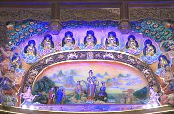 最高层的蓝色穹顶,星光闪烁,深邃幽远,象征着心灵纯净智慧,众生世界美妙祥和。