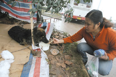 贺小姐看是一只黑背犬,差不多三四个月大。凭她多年养狗经验,判断这只狗是得了犬瘟疫,而且病得不轻。她认为这只狗活不长,很多狗都是因为犬瘟疫死的。
