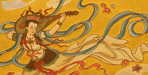 此次扬州漆器厂为灵山梵宫设计承制了四个区域的漆器作品,分别是刻漆贴真金《心经》书法壁画,刻漆彩绘《多宝塔会》、《灵山海会》漆艺壁画,《飞天乐舞》圆挂壁以及刻漆《六祖坛经》书法壁画,扬州厂专门组织了以张宇大师为首、设计师李赖贤、董亚梅为代表的老、中、青三代漆器艺术家和经验丰富的手工艺人,精心设计制作。