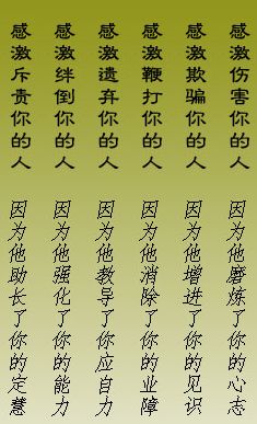 人生成功了有三个档次,第一个档次是首先感谢亲朋好友,第二个档次是有智慧的人感谢小人。我们都恨单位的小人太多,高智商的人感谢小人,正因为有这么多小人,就会是让我们不犯错,在学习中成长。第三个档次是也是人生的最高境界是感谢敌人,正因为碰到这么多敌人,让我战胜一个个困难,如果什么困难都没有,是不会成功的。