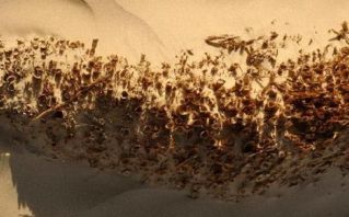密密匝匝的芦苇根留下了大湖里曾有密不透风的芦苇荡的痕迹。当年风起时必是苇叶摇曳、苇絮纷飞;如今风起,只是尘扬沙流。芦苇根止不住沙丘的移动,即便是罗布人当年为安乐窝编造的密实的芦苇墙,在风与沙的夹击下,也只能勉强留下了依稀的家居轮廓。