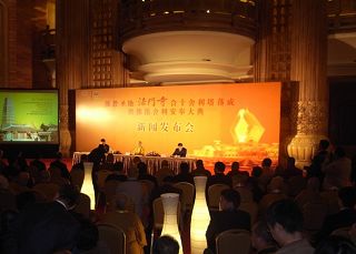 在第二届世界佛教论坛在无锡隆重开幕之际,“佛教圣地法门寺合十舍利塔落成暨佛指舍利安奉大典新闻发布会”在无锡灵山梵宫举行。中华宗教文化交流协会会长叶小文、陕西省人大常委会副会长赵德全、中国佛教协会副会长兼秘书长、法门寺方丈学诚大和尚、陕西省佛教协会常务副会长增勤大和尚、西北大学佛教研究所所长李利安等有关方面的领导、法师、学者出席了本次新闻发布会,新华社、中央电视台、凤凰卫视、江苏电视台、佛教在线、中国佛学网等新闻界的记者和部分参加第二届世界佛教论坛的各国代表共一百多人参加了新闻发布会。