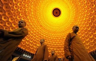 Worrying over the losing of their leader, the beloved disciple, Ananda, asked his teacher, "Whom should we rely on when Bhagavan has gone?" Upon listening to the serious question, Buddha answered in a devout posture, "You should rely on nothing except yourself and the Dharma." This is the important teaching well-known as "Be a lamp unto yourself, and use the Dharma as your lamp", listed in Nirvana Sutra. A lamp is useful when walking in the dark night. Buddha teaches that one should rely on oneself and the Dharma to navigate the breakneck road of life. The original word 'island' was replaced with 'lamp' in the course of Chinese translation to consult the Chinese taste. For the navigators in the high seas or the survivors of a ship-wreck, it is surely a great relief to find an island to drop anchor and rest.