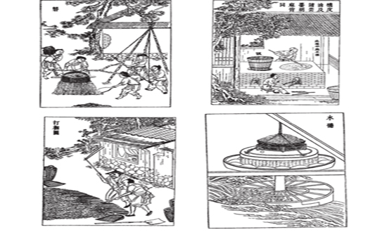 九月筑场圃,十月纳禾稼。黍稷重穋(lù),禾麻菽麦。嗟我农夫,我稼既同,上入执宫功。昼尔于茅,宵尔索绹(táo)。亟(jí)其乘屋,其始播百谷。