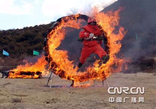 2003年2月19日凌晨,西藏林芝县百巴镇发生森林大火,熊熊大火直扑原始森林,同时危胁着兹巴沟国家级自然保护区和扎拉村150名群众的安全,情况万分危急!刚刚组建几个月的林芝森林支队官兵闻警而动,面对三面湍急的江河,脚下悬崖峭壁的万丈深源,官兵们无所畏惧,发扬森林部队“不畏艰险、连续奋战、敢打必胜”的火场精神,勇往直前,奋力拼搏。为形成包围圈以控制火势,扑救官兵急中生智,用背包绳相互串起来,手牵着手,脚踩着脚,迅速形成一条合围“长龙”,衣服烤着了,头发烧焦了,官兵们全然不顾,白昼过去,夜暮降临,一秒一秒地与火魔进行殊死较量。官兵们在火场地理条件复杂、缺乏高原扑火经验的情况下,硬是用手扒出了3.6公里长、5.6米宽的防火隔离带,连续作战4昼夜,将火魔彻底消灭,一举改写了西藏森林灭火“靠天下雨”的历史。2006年初,位于珠峰自然保护区内的定结县发生森林火灾,日喀则森林大队官兵翻雪山涉冰河,艰难跋涉两昼夜,第一时间投入战斗,24小时扑灭大火,确保了这个世界级自然保护区的生态安全。2008年3月西藏著名的生态景区——卡定沟发生森林大火,直接威胁着林芝地区大片的原始森林和人民群众的安全,总队400余名官兵连续作战7个昼夜终将火魔降服,两个村庄数百名群众的生命财产和数万公顷的原始森林得到保护。战斗中,年仅20岁的林芝森林支队米林中队二班副班长李彬为保护身边战友和群众献出了自己宝贵的生命。