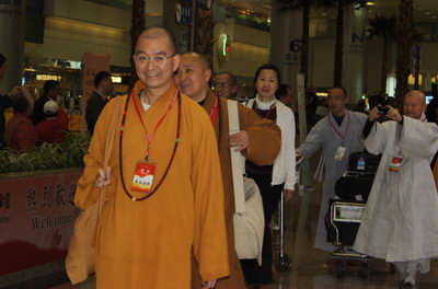 第二届世界佛教论坛包机30日抵台,七百多位与会代表(左一为中国佛教协会副会长兼秘书长学诚法师)参加第二阶段台北论坛暨闭幕式。