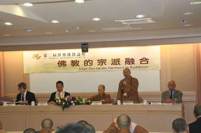 第二届世界佛教论坛于3月31日在台湾六大道场同步进行,其中“佛教的宗派融合”分论坛在佛光山金光明寺盛大展开。