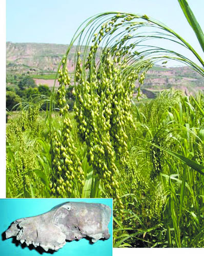 中国北方的农民在粟上建立了自己的文明,同时还用这种农作物喂狗(小图)。(图片提供: Loukas Barton)