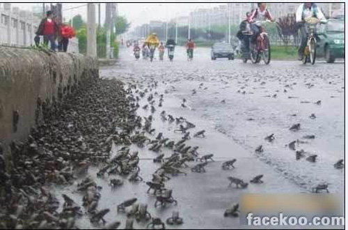 据悉,震前两天,2008年5月10日“有数十万只蟾蜍迁徙”,对此,华西都市报做了报道:日前,绵竹市西南镇檀木村出现了大规模的蟾蜍迁徙:数十万只大小蟾蜍浩浩荡荡地在一制药厂附近的公路上行走,很多被过往车辆轧死,被行人踩死。密密麻麻的蟾蜍布满了村道,分布在农民的菜园和空地里,聚集面积约有二十亩,大量出现的蟾蜍,使一些村民认为会有不好的兆头……遗憾的是,这个现象未引起当地专业人士的足够警惕。