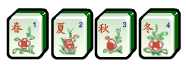 例如,“筒”的图案就是火药枪的横截面,“筒”即是枪筒,几筒则表示几支火药枪。“索”即“束”,是用细束绳串起来的雀鸟,所以“一索”的图案以鸟代表,几索就是几束鸟,奖金则是按鸟的多少计算的。“万”即是赏钱的单位,几万就是赏钱的数目。此外“东南西北”为风向,故称“风”,火药枪射鸟应考虑风向。“中、白、发”:“中”即射中之意,故为红色;“白”即白板,放空炮;“发”即发放赏金,领赏发财。