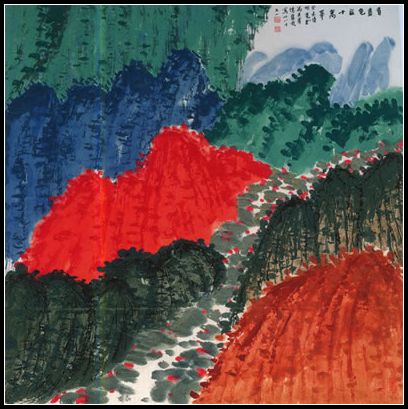 《重彩山水》 斗方 74×72cm 纸本设色 2003年