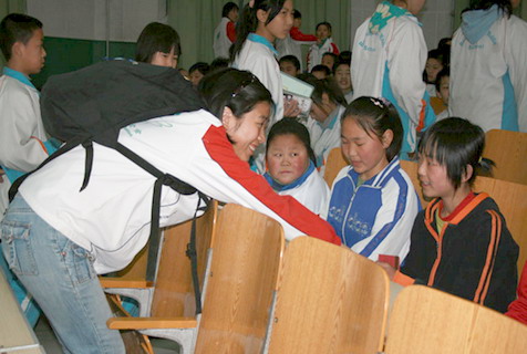 早上10点,市政府、市教育局、市妇联等领导,四百多位十七中学生和二十四位仁爱义工首先到达了宽大的阶梯会场。在热烈的掌声中,这次活动的主角——从顺平、清苑、易县来的28位受助学生代表依次入场。虽是初次见面,但我从这些孩子身上读出了超乎年龄的沉静和成熟。