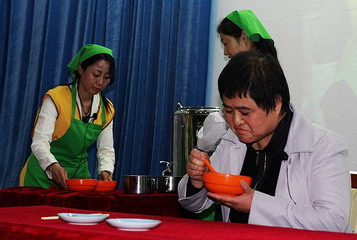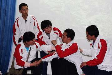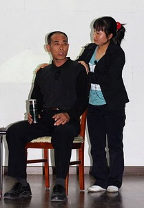 情景剧中的一幕幕场景一次次地撞击着人们的内心。在赈济灾区的情景剧中——“国家遇到这么大的灾难,现在我要是省一点儿力气,一辈子都会良心不安的!”这句话让所有人为之一震;在表现仁爱粥铺的故事中,仁爱志愿者将初来喝粥人的神态模仿得惟妙惟肖,引起台下的阵阵掌声……一个个人物形象都活灵活现。