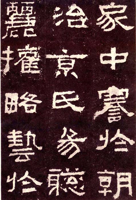 礼器碑,全称为《鲁相韩敕造孔庙礼器碑》,故又名《韩敕碑》,永寿二年(公元156年)刻,在曲阜孔庙,此碑字体工整方纵,大小匀称,左规右矩,法度森严。用笔瘦劲刚健,轻重富于变化,捺脚特别粗壮,尖挑出锋十分清晰,是汉隶中典型的厚重,燕尾极为精彩。书势气韵沉静肃穆,典雅秀丽。翁方纲夸为汉隶中第一。