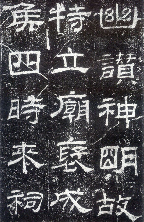 华山碑全称《西岳华山庙碑》,延熹四年(公元161 年)四月刻,此碑与《礼器碑》一样被誉为汉隶中典范,结字堂堂正正,字、行距齐整,波磔秀美。清代朱彝尊评此碑说:“汉隶凡三种,一种方整,一种流丽,一种奇古。惟延熹《华岳碑》正变乖合,靡所不有,兼三者之长,当为汉隶第一品。刘熙载也说:“汉碑萧散如韩敕、孔宙,严密如衡方、张迁,皆隶之盛也,若华山庙碑,磅礴郁积,流漓顿挫,意味尤不可穷极。”