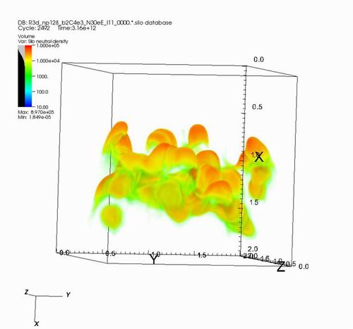 依据最新模拟显示,像这样的气态块状结构进入到宇宙气体和灰尘构成的黑暗区域,然后形成密集的结状结构,在结状结构附近的阴影将过滤强紫外线辐射,这些紫外线辐射可能干扰未来的气态结构形成。