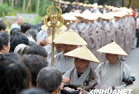 5月2日,农历四月初八,是佛教创始人释迦牟尼的生日。当日,杭州佛教界举行盛大的僧人托钵行脚慈善活动。来自杭州各大寺院的263名僧人托钵行脚,接受沿途信众的慈善捐赠,并将所得的20多万元善款全部捐赠给地震灾区的希望小学。