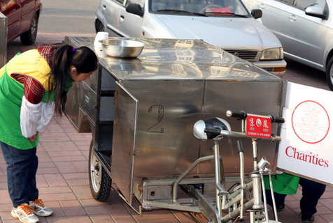 看着她认真擦洗粥车的背影,我忽然想起她曾经说的话:“在粥铺,我找到了成就别人的快乐。我们通常觉得,这件事情是我在做,那它就是我的。可是,我其实只是此事的一个点,这件事中的所有人,都是一个点。我碰撞了这个点,震动了这片网,大家就会互相撞击,使得这件事情更加精彩。太阳的光亮在于聚集了许多闪光,所以团体的力量是最大的。我们是搭一个行善的平台。我在粥铺最受益的,就是跟不同人打交道时所产生的共鸣。”