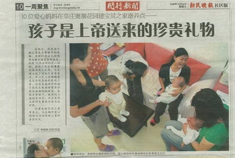 “宝贝之家”是由10位通过摇篮网认识的“爱心妈妈”,于去年6月份发起的一个救助外地残障孤儿的寄养点。当得知有这么一群孤儿需要帮助后,她们自费在闵行区普洱路88弄奥赛花园租了房子,购买日用品和食物,请阿姨日夜照顾孤儿的起居饮食,到现在已经救助十来个不足1周岁的“宝贝”。这些“宝贝”有的兔唇,有的脑积水,但手术后都有望恢复正常。