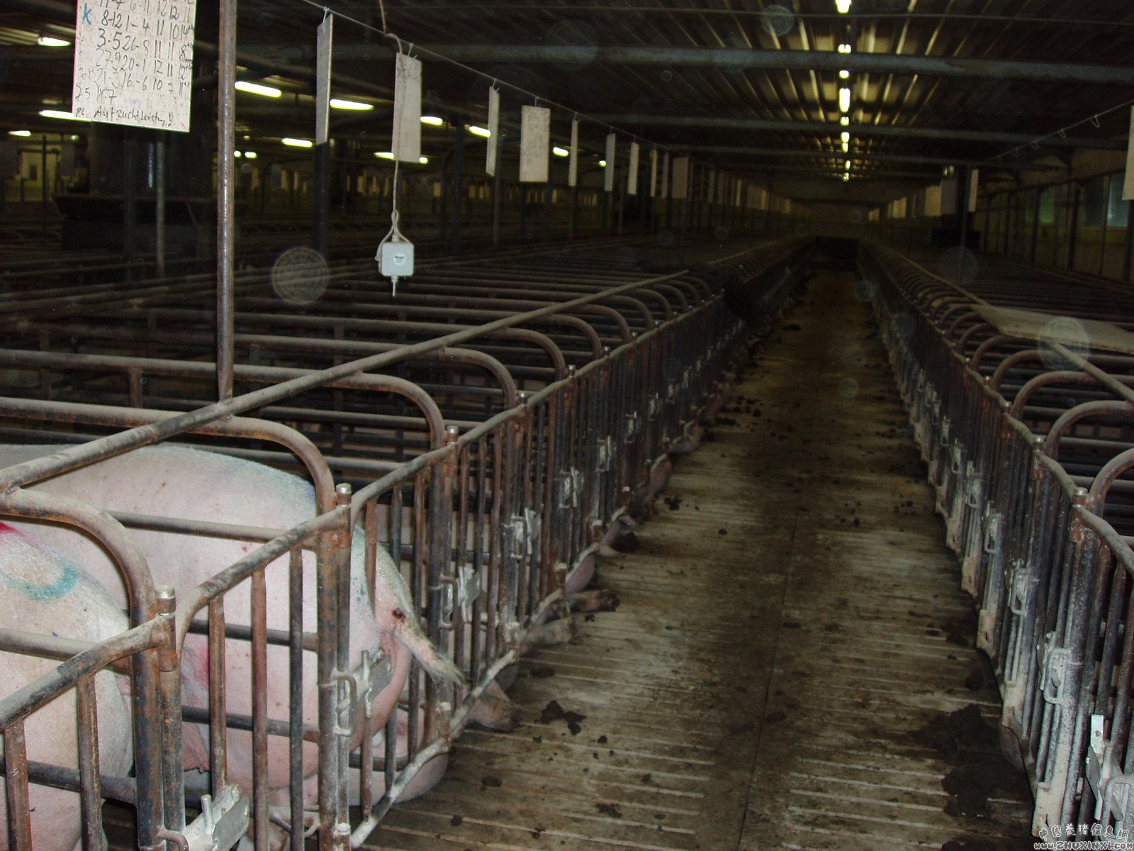 其它动物的遭遇比鸡也好不到哪里去。在自然的环境里,猪是很活跃的动物,每天有好几个小时寻找食物、吃东西、在泥地里打滚。而在工厂化的农场里,猪被锁在比它们大不了多少的金属猪圈里,其行动只能是向前或向后迈一步,无法转身,也不能做任何别的运动。母猪在生产时,则被特制的铁架子压得死死的,丝毫动弹不得,据说是防止母猪打滚压到小猪,除了在铁架子下发出呻吟和哀鸣,母猪又能做什么呢?而小牛一出生就被带离母亲,吃着违背它们咀嚼天性的液体食物,并被刻意维持在缺铁的贫血状态,以保证它的肌肉直到屠杀的时候仍旧柔嫩。在只有75厘米宽的牛栏中,小牛渡过它整整的一生,即使是趴下,也必须艰难地拱起背来,把脚埋在腹下。