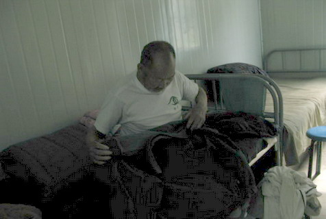 再说一说敬老院里一个特殊的住客,上图里这名被地震里倒塌的房屋压得高位截瘫的青年,他是睡在塑料布上的,为的是防止屎尿弄脏床单。提出收养孤儿的要求的人很多,但是罕有提出收养残疾孤儿和残疾人的。