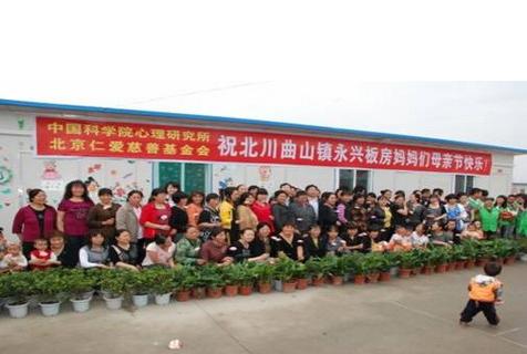 五月,春意盎然,然而随着5·12灾后周年纪念日的到来,北川县曲山镇永兴板房的群众心情复杂。为了给灾区的妈妈们一份关爱,一声问候,一段祝福,北京仁爱慈善基金会与中科院心理所一起,在5月10日母亲节启动了仁爱“温暖妈妈”工程。