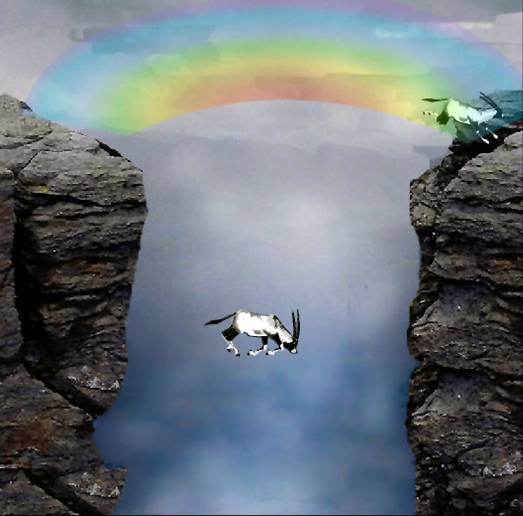 这时,一只最年长的斑羚威严地走了出来,随着他喉咙深处的几声低鸣,出现了一个奇特的现象:斑羚们在断崖前分成了老年和青壮年俩组。续而,一只老斑羚飞身出列,纵身跳向断崖,紧接着一只青年斑羚也飞也似地闪了出去,就在老斑羚跳到半空最高极限时,青年斑羚恰好踩到老斑羚背上,一记猛力的蹬踏,青年斑羚竟然借着助力跳到对面山崖上,而老斑羚则失身坠下了万丈深渊,许久许久,才传来一声沉闷的回音。