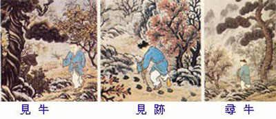 一开始修行,发愿‘上求佛道’,首先要知道‘佛’及‘道’究竟在哪里,即是要‘寻牛’。以禅宗而言,南参北学,参访善知识,为的就是要找到这头牛,以明悟心性。此偈颂的内涵,就是在说明禅宗‘寻牛’的心境。