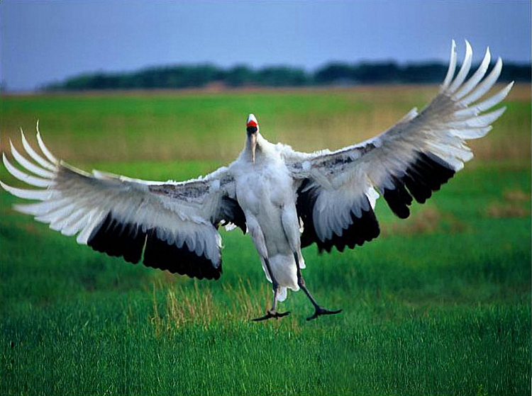 仙禽丹顶鹤是人类心目中美好事物的象征,自古有“梅妻鹤子”之佳话,比喻酷爱自然、情系自然之人;而“焚琴煮鹤”则喻为对美好事物的肆意毁坏。盐城保护区热诚的养鹤人为我们放飞仙鹤令人如浴仙风、洗心革面,那一只只丰姿秀逸、超凡脱俗、昂首独步的丹顶鹤,优雅地起舞,翩然振翅,然后排云而上,直入碧霄。深深印在我的脑际的还有那一行行、一列列,一排排诗句般的与日同辉、与霞齐飞的鸭阵、鹭阵、鸥阵、雁阵。久久萦绕在我心头的更是那首用生命谱写的丹顶鹤之歌。