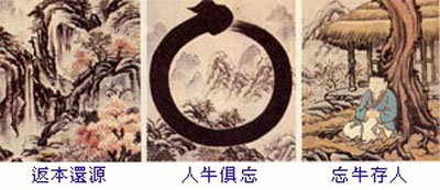 ‘返本还源已费功,争如直下若盲聋。’就是说:从‘寻牛’开始,历经种种的磨炼及熏修,费尽心力,方契合诸佛之心印,而得返回心之本源。到了此刻,才知道连‘返本还源’也是多余;因为一切都是本具的,本无生灭,本无去来,法尔如是。此时,再说‘返本还源’,也是浪费唇舌;倒不如当下这念心见而无见、闻而不闻,任他外境千变万化,都如盲若聋,始终安住在心之本源,始终安住在这个绝对的境界上。