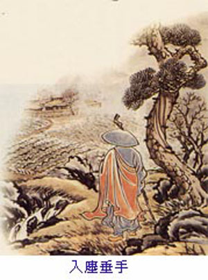 前面‘返本还源’,在这念心之体上站得住又站得长,这是自受用的绝对境界,唯属自利之行。此处‘入廛垂手’,则更进一步,以大悲心倒驾慈航,不畏劳顿秽垢,涉足众生烦恼住处,广行利他之菩萨行。