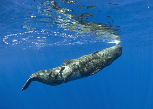 这张照片是在科纳岛以西10英里处拍摄的,拍摄当天这一水域出现了两组抹香鲸,每组约有5到6头。另外,还有十多条鮣鱼紧紧粘在这头抹香鲸身上。成年抹香鲸身上一般粘着一两条鮣鱼,这可能是因为成年抹香鲸潜水深度更深。这张照片是由托马斯·凯利(Thomas Carey)拍摄的,在广角组中获得第三名。