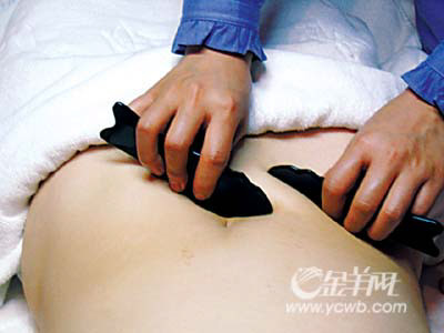 十、腹痛:取背部脊柱旁两侧刮治。也可同时刮治胸腹部。
