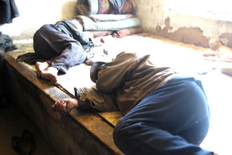 这两位老人是叔侄,生活不能自理,由侄子韩振付照顾。韩振付今年43岁,还有3个孩子在上学,自己包了30亩地以维持生计。