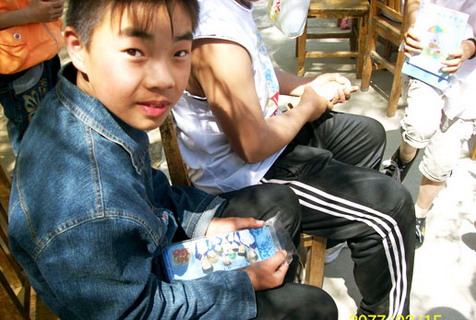 这是团结地小学的孩子们在过六一儿童节,虽然我们再去时没有穿着义工服,但他们一眼就认出我们是从北京来的,是那天发衣物的人,孩子手里拿的就是我们捐赠给学校的铅笔盒。