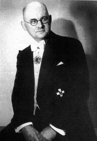 这张脸说不上出众:光头,圆形脸,圆框小眼镜,小胡子,但正是这张脸的主人从日本人屠刀下挽救了二十五万中国平民的生命——约翰·拉贝,一张中国人无法忘怀的脸,1997年由江苏人民出版社在国内首次出版的《拉贝日记》即截取了他佩戴勋章侧身微坐的半身像的脸作为封面,而今,我又在这本《约翰·拉贝画传》中发现了这张泛黄的全照。照片中,拉贝先生微侧着脸,眼神专注凝视左前方,两手很自然的下垂,握在一起,他戴着那副标志性的眼镜,黑衣服、白领结,胸前挂着蒋介石颁发的玉石勋章,西服上别着一枚有德国纳粹标志的老鹰胸章。他嘴唇轻抿,唇角带着温柔的笑……
