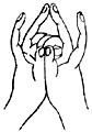 左手掐都监诀,右手执印,存七星在头上,闭炁叩齿,按印放患人心上,……请收魂破邪大威力士,随印消病。