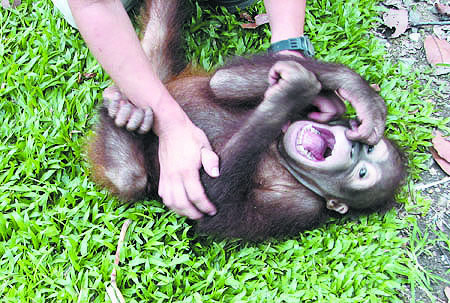 像人类一样,猩猩和其他类人猿也因胳肢而大笑。