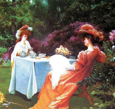 带动宫廷贵族享受中国茶开风气之先的功臣,当属1662年下嫁英王查理二世的葡萄牙公主凯瑟林,人称“饮茶皇后”。当年她的嫁妆包括221磅红茶及精美的中国茶具,那个时代红茶之贵重堪与银子匹敌。新皇后高雅冲泡品饮的表率作用,引得贵族们争相效仿。“英式下午茶”这一称谓的正式发明则是19世纪40年代的创举,当时那些富极无聊的贵族妇女们,每日享用完午餐后,便为如何打发晚餐前的整个漫长下午而苦恼。一个名叫安娜的公爵夫人灵机一动,发明了喝下午茶这个节目,它一问世立即受到上流贵族的欢觃,从此有钱又有闲的大富大贵们,每天便拥有了一个高雅正式的名义聚在一起“说长道短”了。同时,贵族妇女们也以赴下午茶的借口盛装出席,这便为她们争奇斗妍,展示时装提供了绝好的机会。