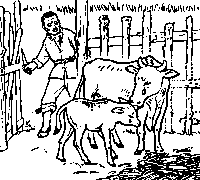 有一桐庐人,养了母子两头牛。在同一天内,将一头子牛卖给农民,将一头母牛卖给发屠户。母子分手,同时出门,小牛站在溪边,依依不舍地望着母牛被屠户牵领着,渡过一条溪水,进了家门。小牛一声长鸣,表示了对母牛的眷恋之情。这时,尽管农民用鞭子驱赶它,还是立着不动,硬把它拉跑,它却一步三回顾。但它不得不跟着农民越过重重山岭,穿过条条小路,来到了农家,并把它安置在牛栏内。