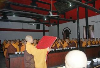 这个同学尽心尽力跑到厨房里面去做,我们也给他说,最好有机会跑来也去学,这个会话,因为将来师长、同学大家都学藏文了,将来我不学怎么办呢?厨房必须花很多精神,你们没做过不知道。做少了吃不够不好,做多了剩下来又不好;诸如此类,又要顾及营养,又要顾及惜福,又要顾及这个,又要顾及那个……一大堆,所以自然而然……你们没有做不知道,等到有一天你们自己做了,你们才晓得有多辛苦!结果他因为做完了以后,他学得就不如别人。人家就跑过来,“大家比一比啊”,实际上这也是我们这里希望同学当中(通过这种方式)好好地增上。结果他一比嘛,他当然差了,人家就笑他,“你怎么这么差劲?”不但这样说他,而且显然地很轻视的态度,对他(讲)很难堪的话。这个法师第一个念头起来……