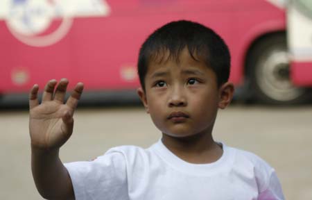 唐铭君,男,9岁,羌族、四川省广元市剑阁县凉山乡盐井村人。“5.12”大地震时,8岁的唐铭君从学校废墟里逃出来时没有哭。前些天,离别一年的亲人找到他时,他也没有哭。但是,今天他哭了。“舍不得离开这里,舍不得离开照顾我的阿姨。”唐铭君说。“刚来的时候,我怎么也不想呆在这里,夜里经常做恶梦,吓得一个劲哭,是吴阿姨每天陪着我,夜里给我讲故事,陪我睡觉。其实,我知道吴阿姨的女儿也跟我一般大,但为了照顾我,她整整一个多月没有回趟家。等回到四川我要跟周围的人说,在大海边上有我的家,那里有我的另一个妈妈。”