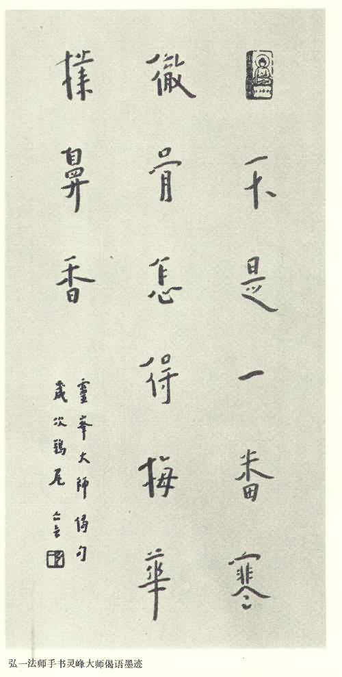 弘一法师手书灵峰大师偈语墨迹