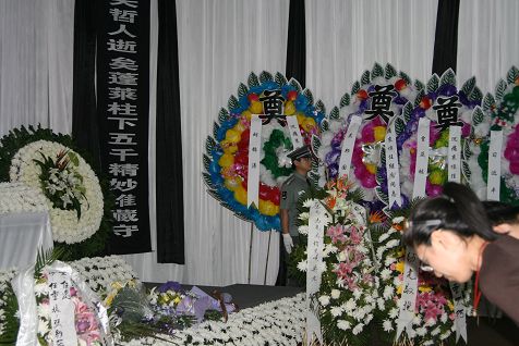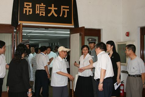 大厅内外摆满了国家领导人,任老家人,社会团体,任老故友、弟子,素昧平生的崇敬者送来的花圈和挽联,哀乐充满虚空,似乎任老慢慢迎来。